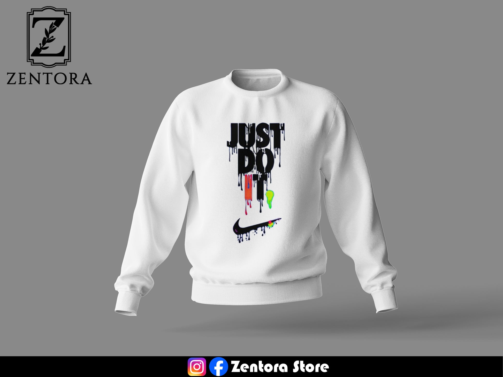 Unleash your bold side with this premium white sweatshirt from Zentora Store. Featuring a modern twist on the iconic ‘Just Do It’ slogan with artistic drip graphics and vibrant splashes of color, this piece is perfect for those who love to stand out. Sleek, stylish, and effortlessly cool—elevate your casual wardrobe today. 🖤✨ #JustDoIt #ZentoraStyle #StreetwearGoals
