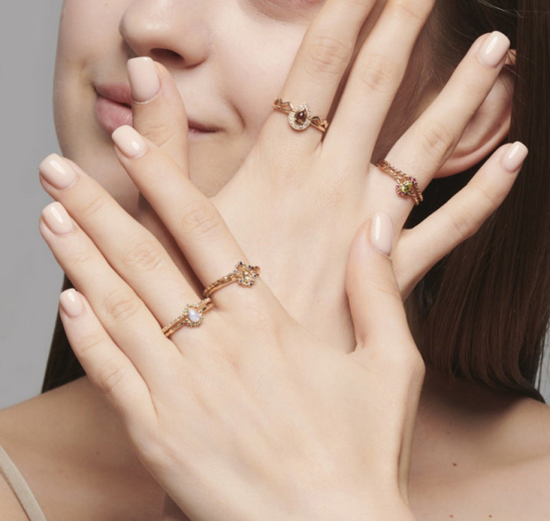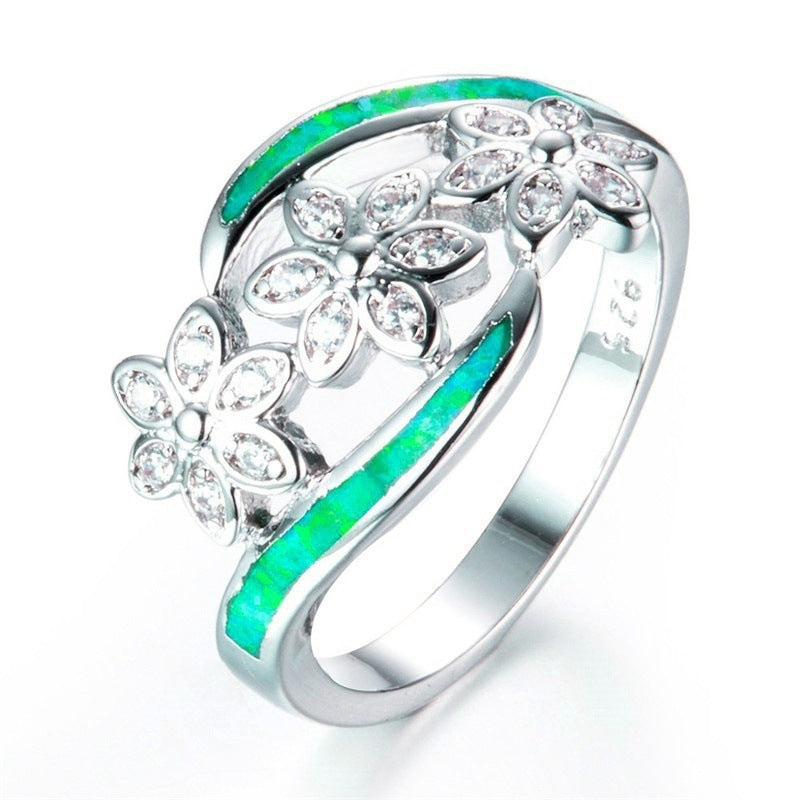 Ring Opal Diamond Three Flowers Female Ring
