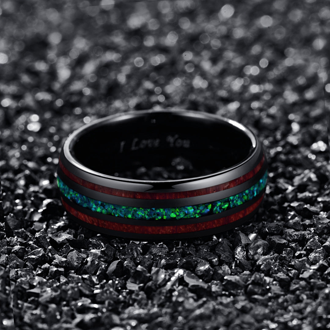 Blue Opal Tungsten Ring Men
