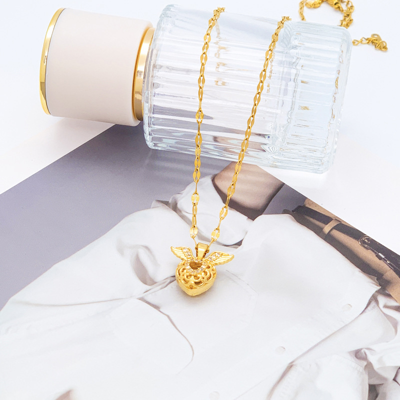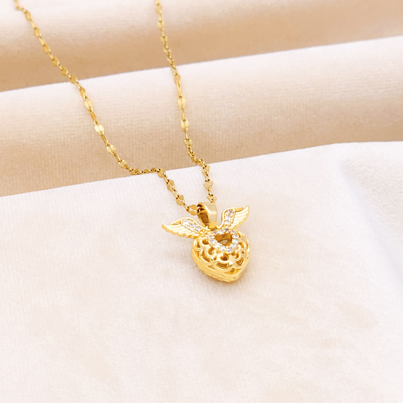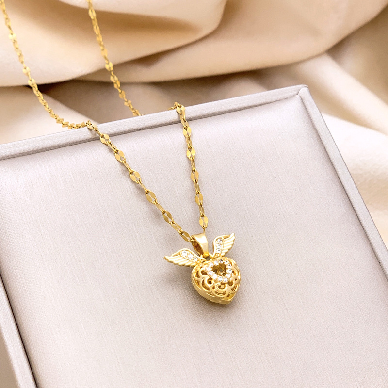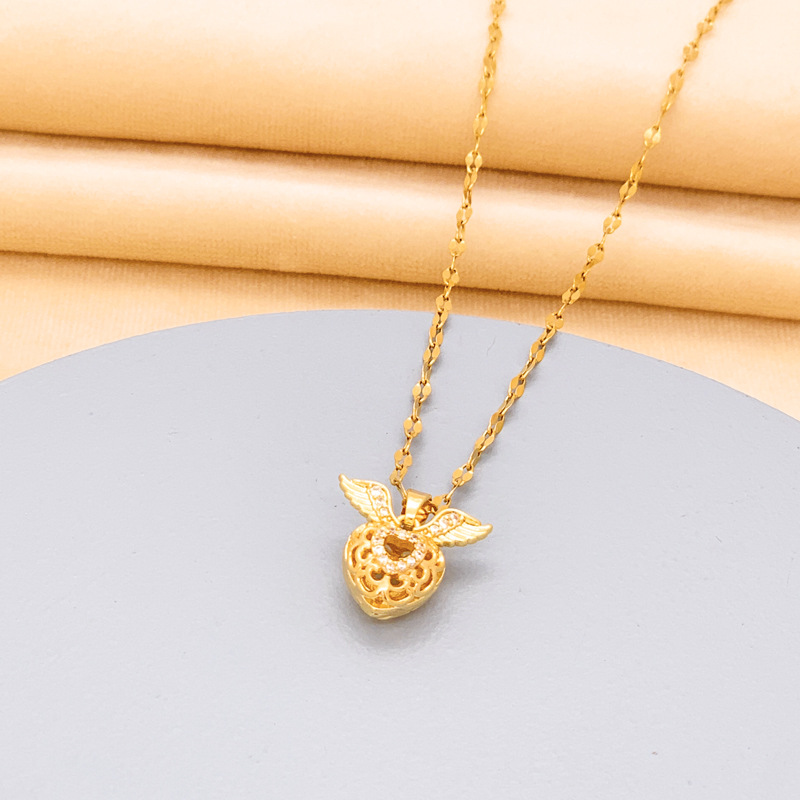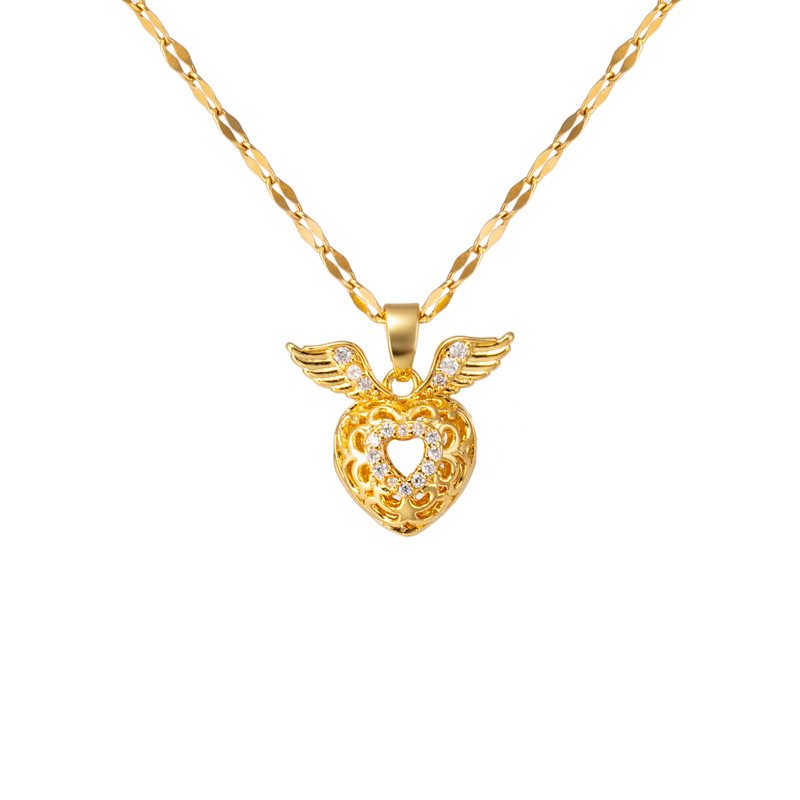 Three-dimensional Diamond Heart Wings Pendant Necklace